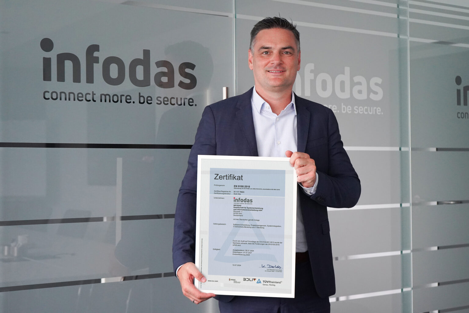 “We are very pleased to have achieved this important certification. The infodas project team pulled together throughout the entire process and co-operated exceptionally well. It involved great effort, but the result speaks for itself. During the intensive collaboration with the TÜV Rheinland team of auditors, we underwent an extensive test procedure and proved that we ensure the safety, reliability and quality of our product portfolio and all company processes,” explains Carsten Leutloff, Processes and Quality Manager at INFODAS GmbH.